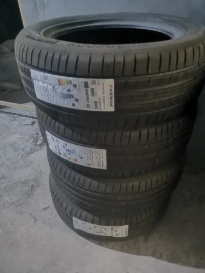 3 pneus de marque Hankook made in Korea 25000 da/pneu. Moins de 14000 km Dimensions 215 55 17 J’ai aussi un Wanli même taille.