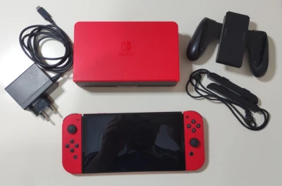 Nintendo Switch Modèle OLED Edition Mario Rouge mflashia etat 9/10 avec tous ces accessoires : - Flashé puce carte mémoire 256Gb (ADATA) - Dock TV RED (Mario) - Chargeur d'origine - Suppo