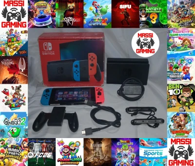 Nintendo switch v2 flaché état neuf Caba 🇨🇵 Toutes les accessoires (Switch/joycons/chargeur original/dock/hdmi original/dragons/support) Carte mémoire V30 128gb +30 jeux Blida/