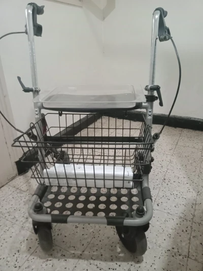 Déambulateur rollator Invacare Banjo à 4 roues adapté pour une utilisation en interieru et extérieure, pliant pour être facilement stocké et transporté, poignées de poussée et de fr