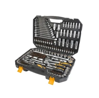 Caisse à outils 175 PCS 15146 Cliquets réversibles 3pcs 72T : 1/4″ + 3/8″ + 1/2″ 17 douilles Cr-V 1/2″ : 10,11,12,13,14,15,16,17,18,19,20,21,22,24,27,30,32mm 5 douilles profondes