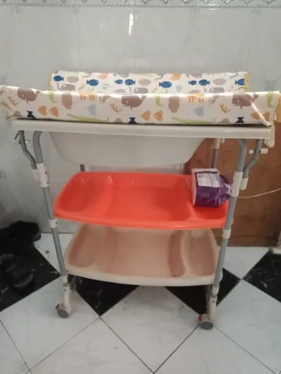 Je mets en vente une table pour changer le bébé lui faire prendre son bain plus des étagères pour mettre le nécessaire de puériculture la table est un peu abîmée en haut (côté cuir