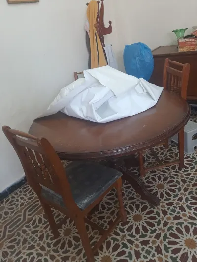 Salem pour raison de déménagement je met en vente: Fauteuil état moyen 4000da Table à sale à manger a 6 chaises 40000da Table basse propre et solide 7000da Cadre de lit 3000da Commode 8