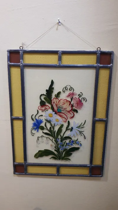 Liquidation de Stock Vintage cadre / vitrail, à suspendre. Tableau lumineux en Vitrail. Peinture Sur Verre