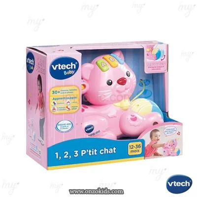 -Un chaton tout mignon à tirer pour voir sa pelote bouger ! -Lorsque Bébé fait rouler le chaton, ses pattes bougent, la pelote de laine tourne et roule sur le sol et il déclenche des ph