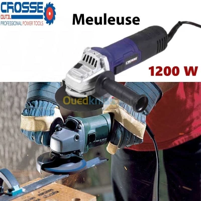Tronçonneuse Meuleuse électrique Cross Puissance 1200W. Diamètre disq Ø115MM. Vitesse à vide 11000 tr/min. Accessoires inclus: 01 Poignée latérale. 01 Pair de charbon.
