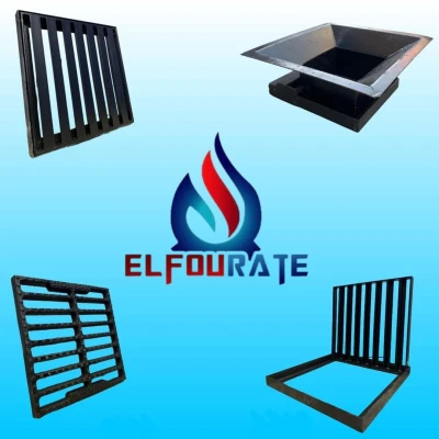 ELFOURATE NEW vous propose grille avaloir et caniveau en acier et fonte: 400×400 500×500 600×600 1000×300 500×400 500×300 500×250 500×200 Clapet: 400×400 500×500 600×600 Tampon: 8