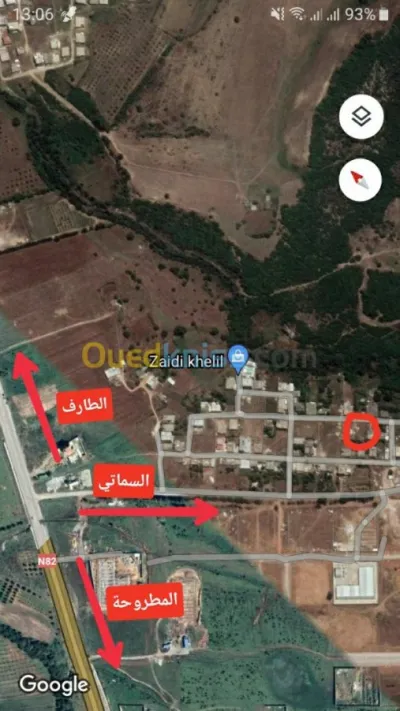 قطعة ارض ولاية الطارف في السماتي 1 بعقد ملكية محاذية للطريق ذات ارض مسطحة