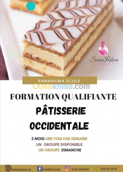 L'école Sanahilwa vous propose une Formation Pâtisserie Occidentale avec diplome agrée par l'Etat: Tarte citron, tarte chocolat, flan parisien , tarte fruits, cake, salé, mille-feui