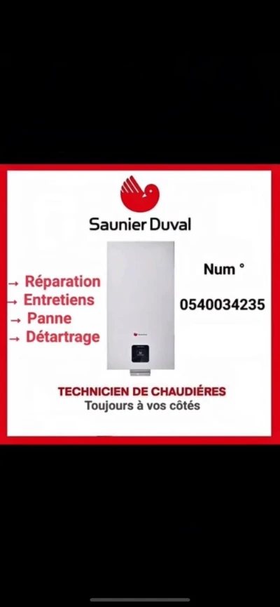 Je suis un technicien chaudière avec une longue expérience dans Réparation tout type de chaudeur chauffage central. ce domaine on fait tout les (Saunier Duval. Berreta . baxi) *Les répar