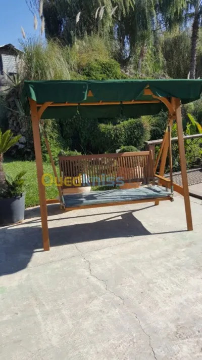 SARL samoya ameublement met en vente des balançoire en teck 3 places. Bois massif, traité, résistant au intempéries. Produit importé.