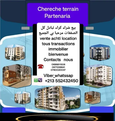 Nous recherchons un terrain pour construire des immeubles résidentiels au centre de telemcen . Si quelqu'un possède un terrain au centre de l'Etat de telemcen et souhaite participer avec