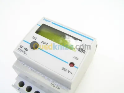 Compteur d'énergie divisionnaire monophasé direct 32A tarif simple Hager EC111 Fiche technique : Tension assignée d'emploi : 230V Fréquence assignée : 50/60Hz Type de pôles