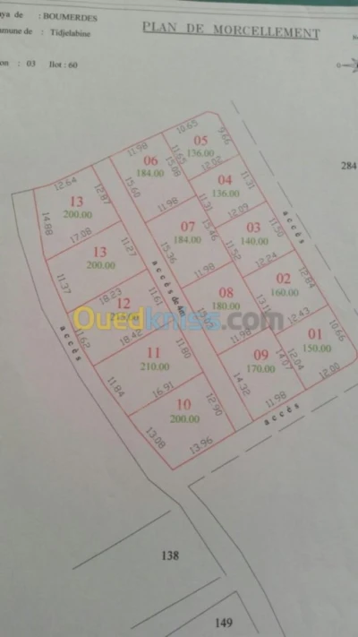 Terrain a vendre larbaatache boumerdes Superficie 209 mètre carré Acte et livret de foncier Certificat d' urbanisme R+3 Négatif Prix 45 000 da mètre carré Tel