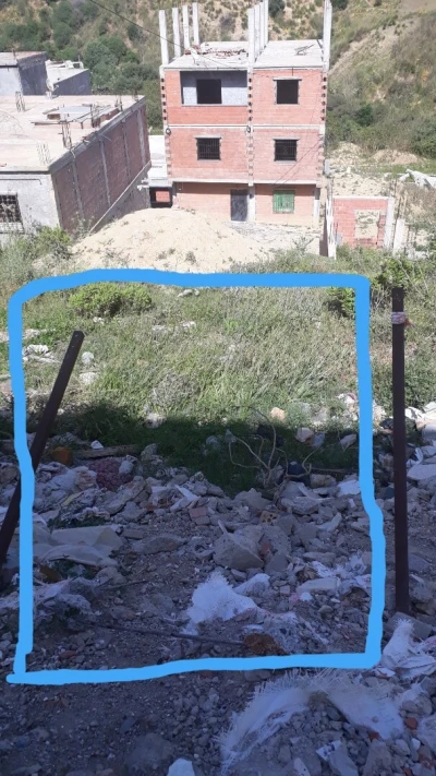 قطعة أرض مبنية على مساحة 100 متر كرركاسة بلاط فورم و بوطوات و فوال و فيها جهتين بها عقد جماعي و عقد في الاس