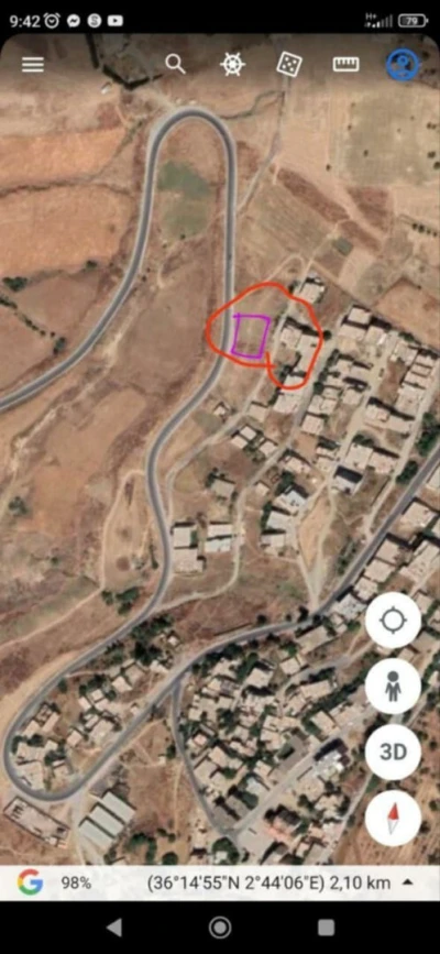 Salamwa3likoum. Vente terrain a medea centre thniat el hadjer , 9riba 3la masdjid mokhbat b 260m . Terrain carré plat 2 facades ou peut-être 3 facades. 438m², 9oudamak l'eau , l'électric