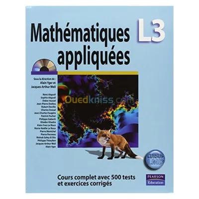 Titre : Mathematiques Appliquées L3 Cours complet avec 500 tests et exercices corrigés ( cursus LMD) Auteur : Alain Yger et Jacques-Arthur Weil Editeur : Pearson Année : 2009 Théme : Sci