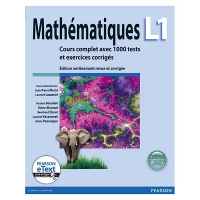 Titre : Mathématiques L1 + eText: Cours complet avec 1000 tests et exercices corrigés Auteur : JeanPierre Marco et Laurent Lazzarini Editeur : Pearson Année : 2012 Théme : Sciences De L'