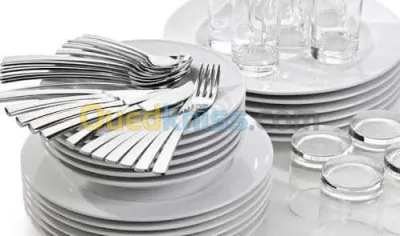 Location de vaisselles pour les événements assiette plates assiette creuse bol verre à eau tasse à café verre à thé thermos les couverts location table ronde rectangulaire Table haute