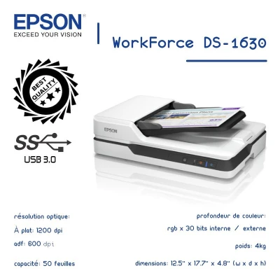 Scanner à plat professionnel - Haute performance Type : Scanner à plat avec chargeur automatique de documents (ADF) Zone de numérisation : Jusqu’à 210 x 297 mm (A4) Résolution optiqu