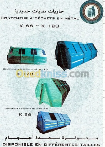 bac a ordure touts les model en tole noir galvanisée caissons métalique 10/80m3 1100l/770l/660l