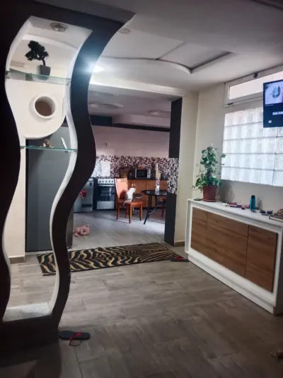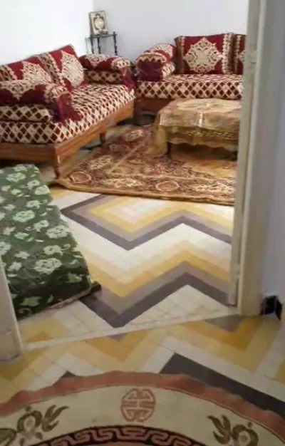 A l'origine F4 avec 03 façades dégagées dont 2 orientées vers le stade olympique Hadefi Miloud,acté.: Meublé et équipé -Rénové et modifié en T5=1grand hall exploité comme séjour
