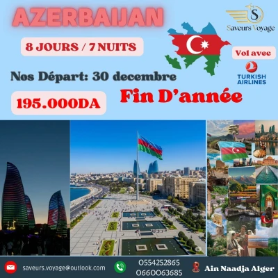 Saveurs Voyage vous propose un voyage inoubliable pour fin d'année pour la nouvelle destination AZERABIDJAN - Séjour de 08 jours – 07 nuitées - Billet d’avion aller-retour avec Turk