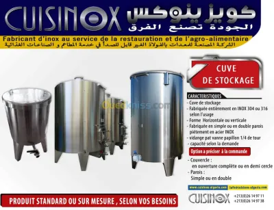 Fabricant d'équipement en inox au service de l'agroalimentaire cuves De stockages en INOX idéal pour le stockage de l'huile d'olive ou d'autres produits liquide. CARACTÉRISTIQ 🚩 Fabr