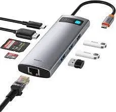 ADAPTATEUR (8 IN 1) TYPE-C TO RJ45+TYPE-C*2+SD CARD+USB3.0*2+HDMI 8 in 1 USB C Adapter with 4K HDMI, 100W PD, USB C Port, USB 3.0, RJ45 Ethernet, SD/TF Card Reader, Docking Station Compati