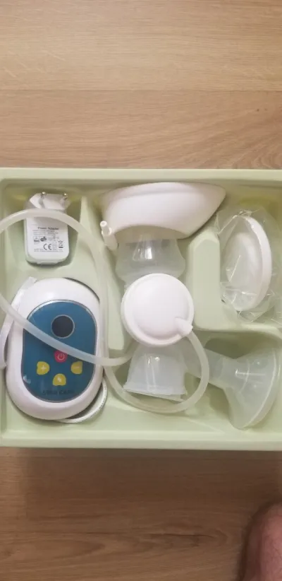 Tire-lait électrique mains libres de marque française 🇨🇵, neuf, sous blister Il a 4 mode et 12 niveaux d'intensité La boîte contient une trousse de rangement, 2 Tire-lait, 2 rech
