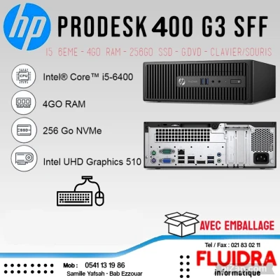 HP PRODESK 400 G3 SFF I5 6EME 4GO RAM 256GO SSD GRAVEUR DVD / CLAVIER - SOURIS - Y-N AVEC EMBALLAGE Livraison en 24/48 h sur les 58 Wilayas . Service rapide, garantie de réception de la m