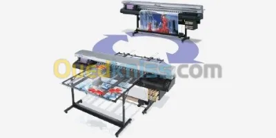 Taille d'impression max. 50'90m, hauteur d'impression 24 cm. 4 imprimantes à plat et cylindres. Trois têtes Epson DX8 Nano 7. 5070. Imprimante UV à plat.