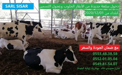 TYPE DE BOVINS: Génisses laitières pleines en gestation. بقرة Âge: entre 29 et 40 mois. ******************** RACES: Montbéliard, Holstein (Prim’Holstein), fleckvieh, la Brune des