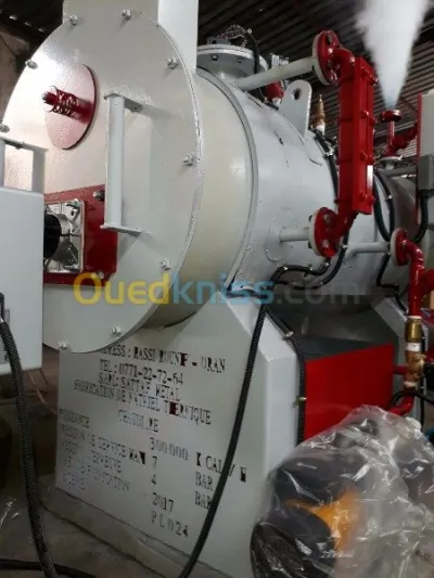 مولّد بخار (chaudière) يحتوي على خزان ماء يتم تسخينه لإنتاج البخار بضغط عالٍ. تُستخدم هذه الآلة لتوفير بخار م�