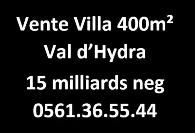 Agence EL-KITMENE vous propose en vente une Villa (R+1) à démolir ou à rénover. Sup: 400m² Bâtie: 160m². Acte et LF. Bien situé au Val d'Hydra coté Canon, au prix de: 14 milliards n