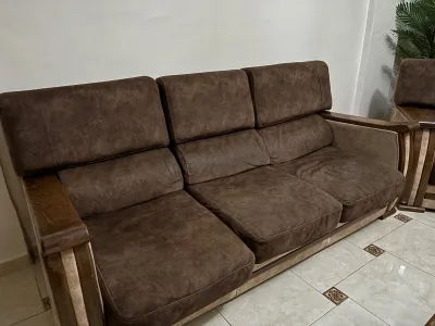 Je vends mon fauteuil magnifique qui est en très bon état, cinq places, couleur marron et beige, le bois est intacte شويا حابط برك هذا مكان
