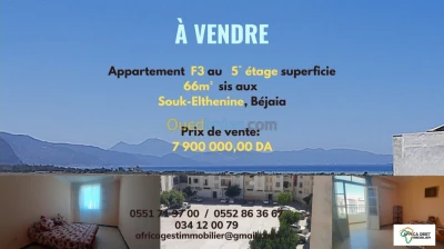 Groupe Houari Immobilier met en vente un appartement Type : F3 // Superficie : 62m² // Etage : 3eme Adresse : SOUK EL THENINE Prix : 8 000 000DA / Un logement bien situé sur la cote lit