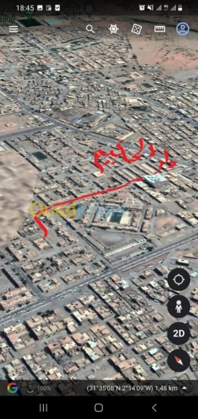 عقار للبيع مساحة 1200 متر مربع ذو واجهتين يقع بمكان تجاري على طريق رئيسي بولاية بشار حي قوراي به طابقين و ب