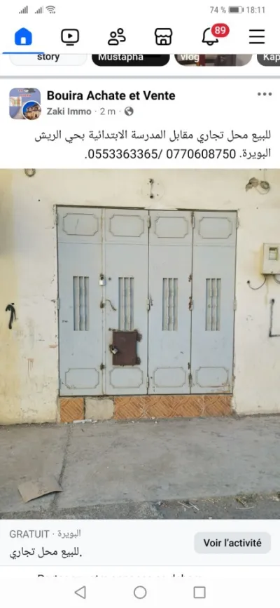 Je met en vente un locale commercial sup 15 m avec acte et livret foncier pour plus d'informations contactez nous au N de téléphone