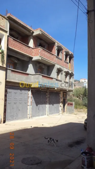 Maison située dans le quartier de Sidi Ali à Akbou (Wilaya de Bejaia). Composée de 3 appartements de 100 m² et d'un studio. 2 garages, 3 cuisines, 4 salles de bains. 2 entrées. 1 très