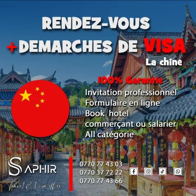 Nous proposons un service professionnel pour l'obtention du visa Chine RAPIDE ET FIBALE ✅ Dossier à fournir : -Passeport original ✔️ -Photo✔️ -Attestation de travail ou RC✔️
