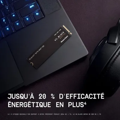 SSD INTERNE WD BLACK SN850 NVME 1 TO sous licence officielle pour consoles PS5 Noir CARACTERISTIQUES Type de disque dur SSD Interne Technologie de disque dur SSD Capacité de stockage (Go)