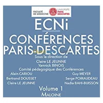 Titre : ECNi - Conférences Paris Descartes Vol. 1 Auteur : Claire Le Jeunne Editeur : Maloine Année : 2018 Théme : Médecine Et Paramédical Sous-théme : Dossiers Cliniques ISBN : 978222