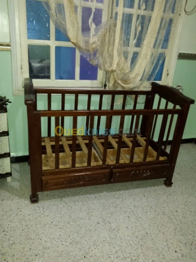Un lit avec de vrais bois pour enfant j'us qu'à 05 ans en très bon état.