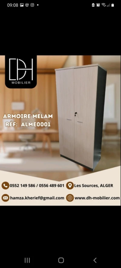 L'image montre une carte de contact ou une carte professionnelle pour une entreprise ou un individu nommé **"MOBILIER ARM ERABLE"**. Voici les détails extraits : - **Référence/Code