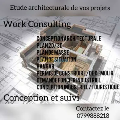 WORK CONSULTING, Bureau d’étude pluridisciplinaire vous propose ces services afin d'établir: -Etude technico-economique prévisionnelle pour l’obtension d’un terrain un crédit banc