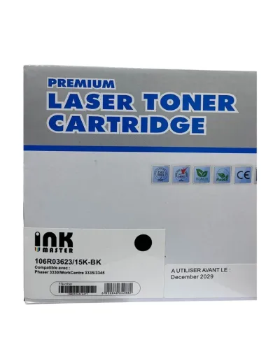 le Toner Ink Master C-106R03623 / 15K-BK (équivalent toner Xerox haute capacité) Compatible avec : Xerox Phaser 3330/WorkCentre 3335/3345- Ctn de 10 #106R03623 #C106R03623 #15KBK #Toner