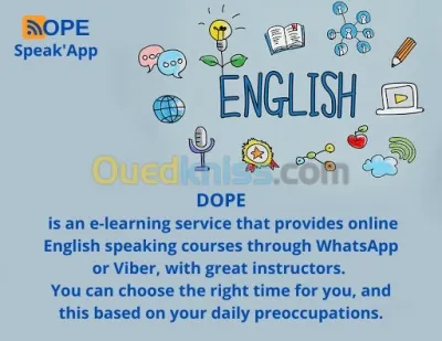 DOPE Is an e-learning service that provides online English speaking courses through WhatsApp or Viber, with great instructors. You can choose the right time for you, and this based on