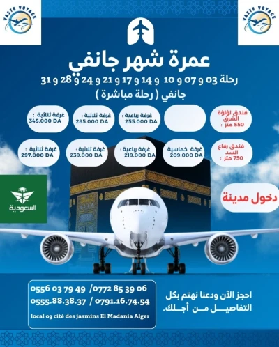 وكالة فيزيت الجيريا للسفر والخدمات السياحية تعرض عليكم برامج العمرة رحالات مباشرة مع خطوط فلاي ناس