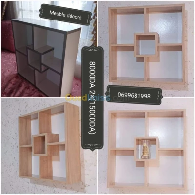Meuble décoré en mdf Dimensions: 60H×60L×20P cm Couler : plusieurs couleurs Prix : 6500DA une pièce 12000DA deux pièce La livraison à domicile avec installation gratuitement